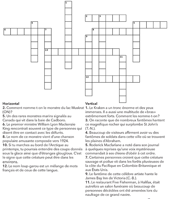 mots croises sur les monstres et fantomes du canada histoire canada